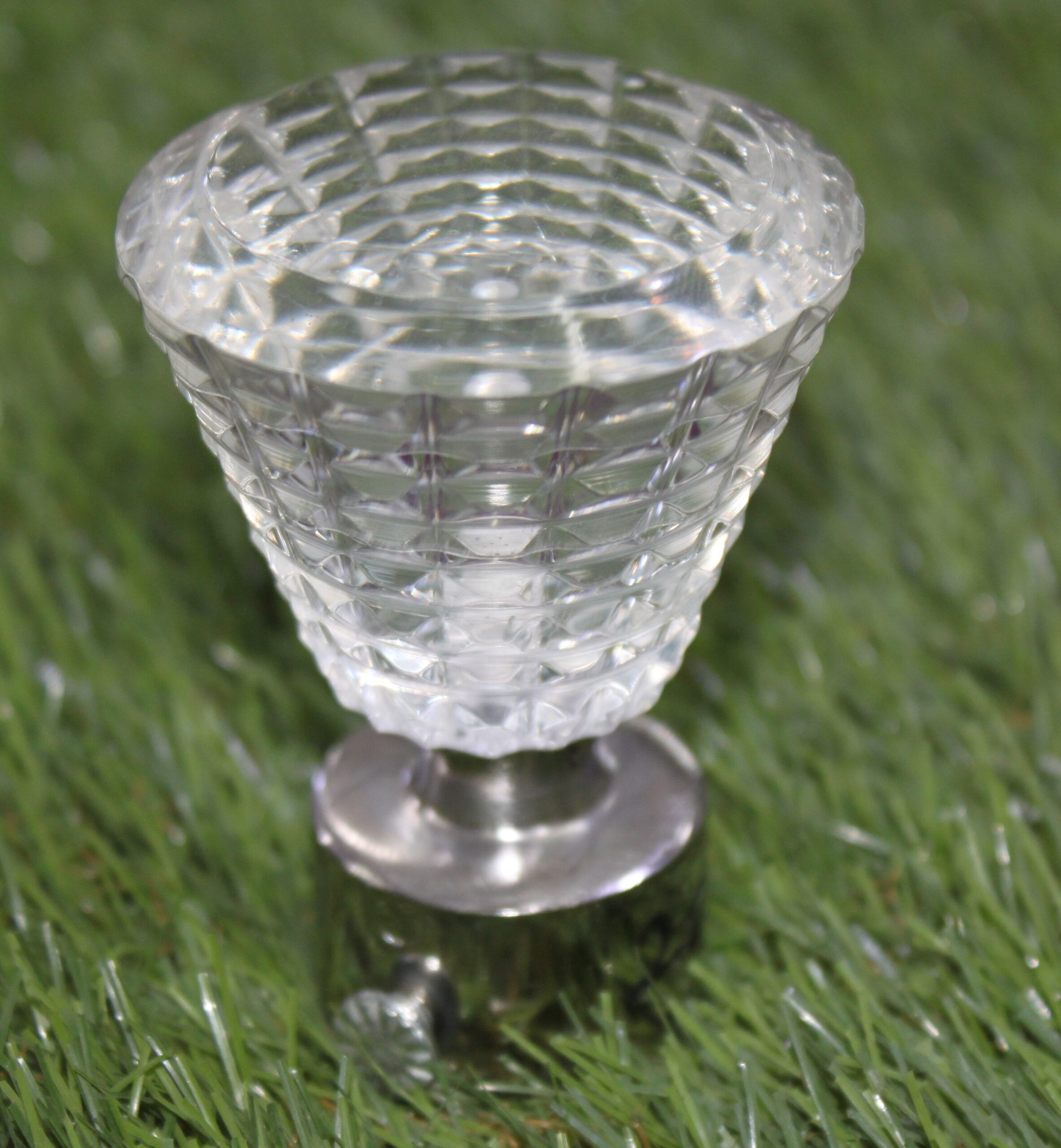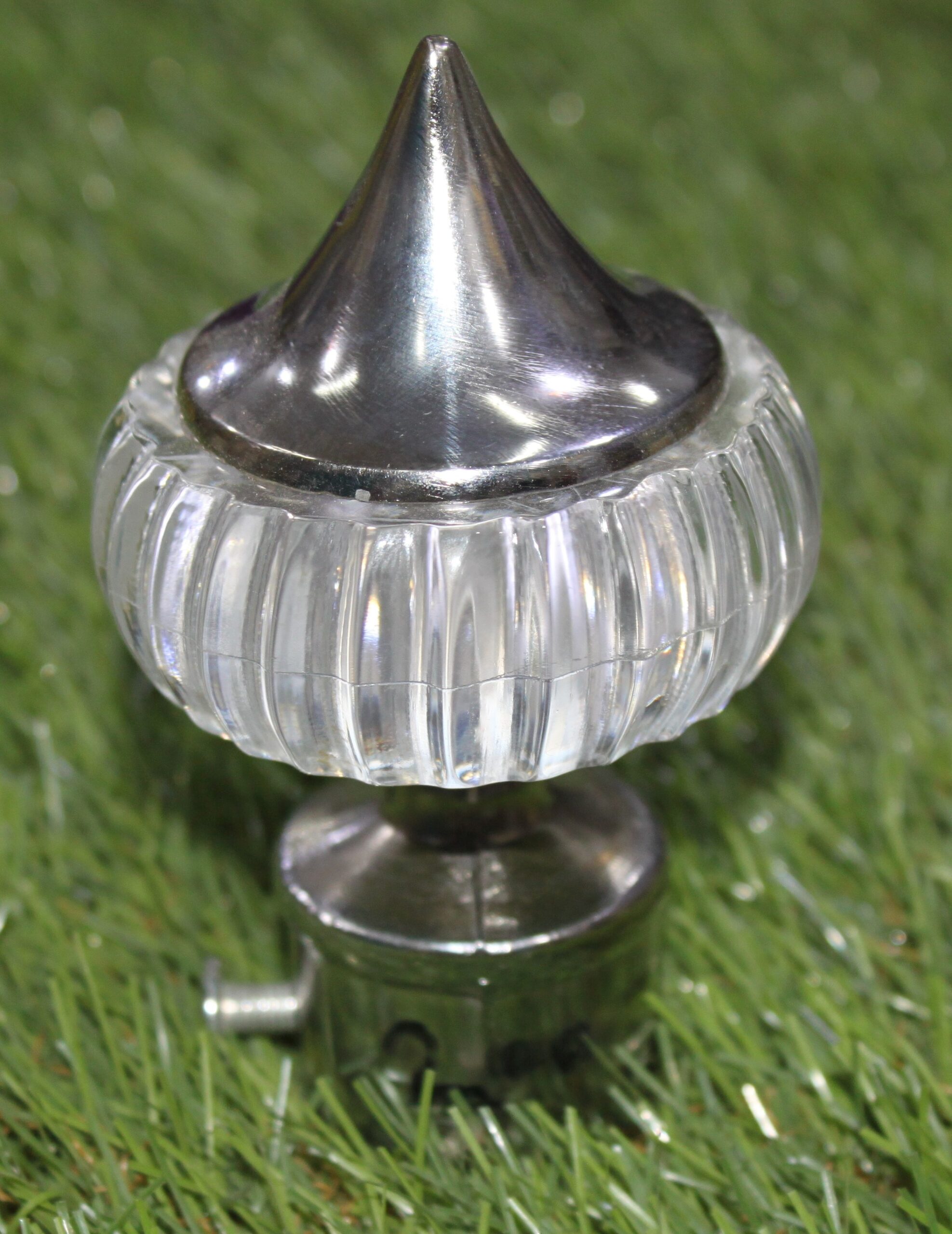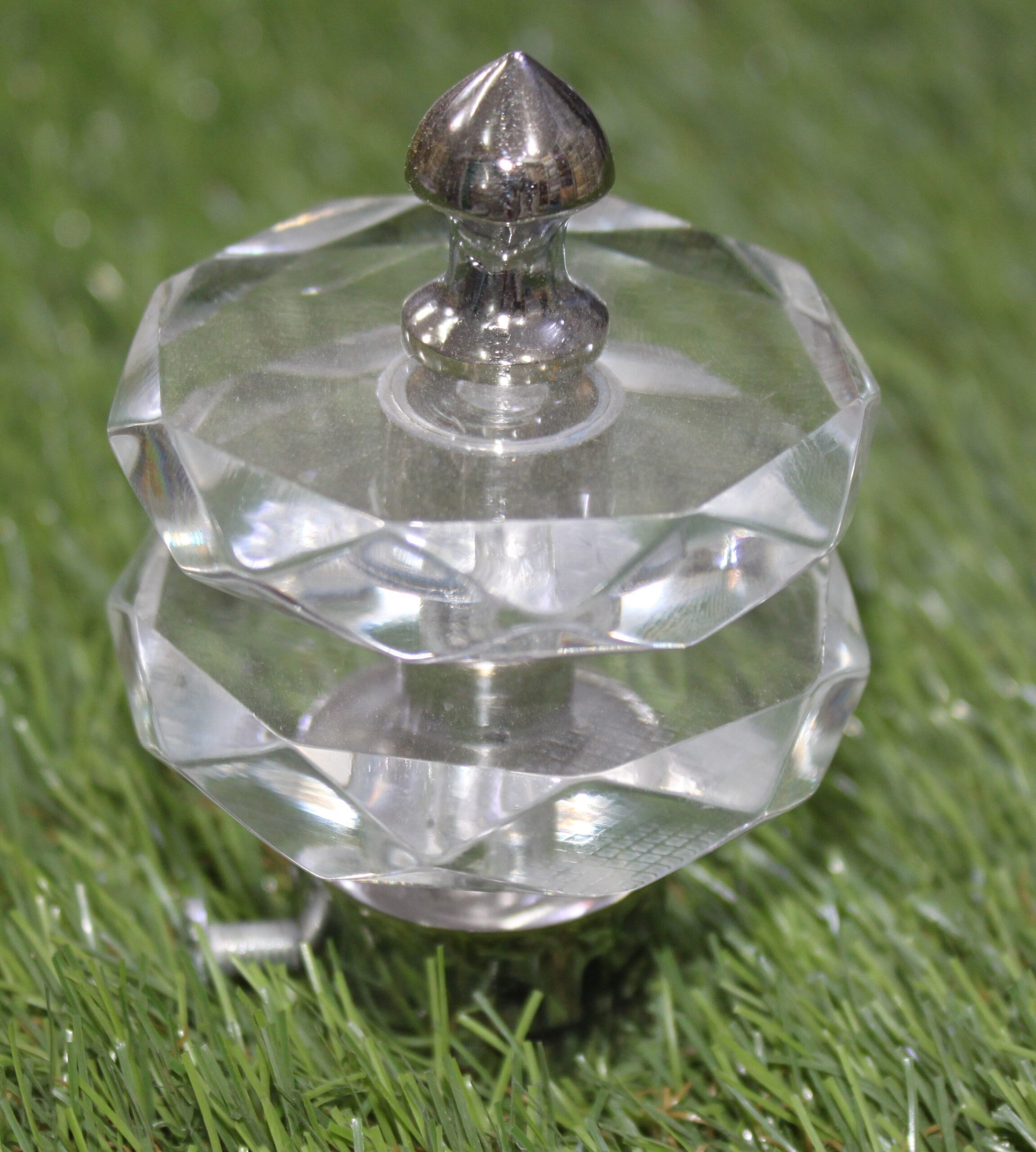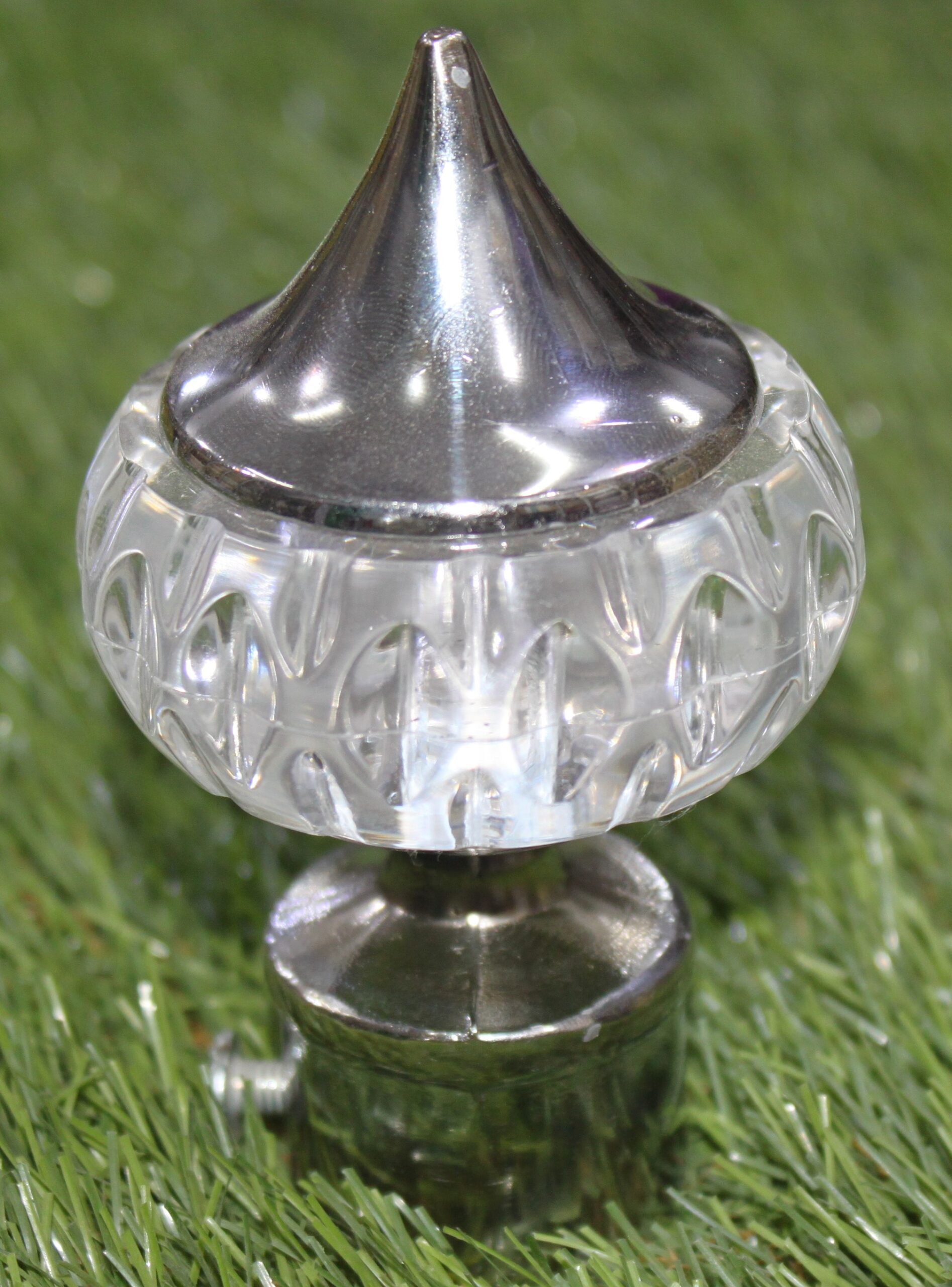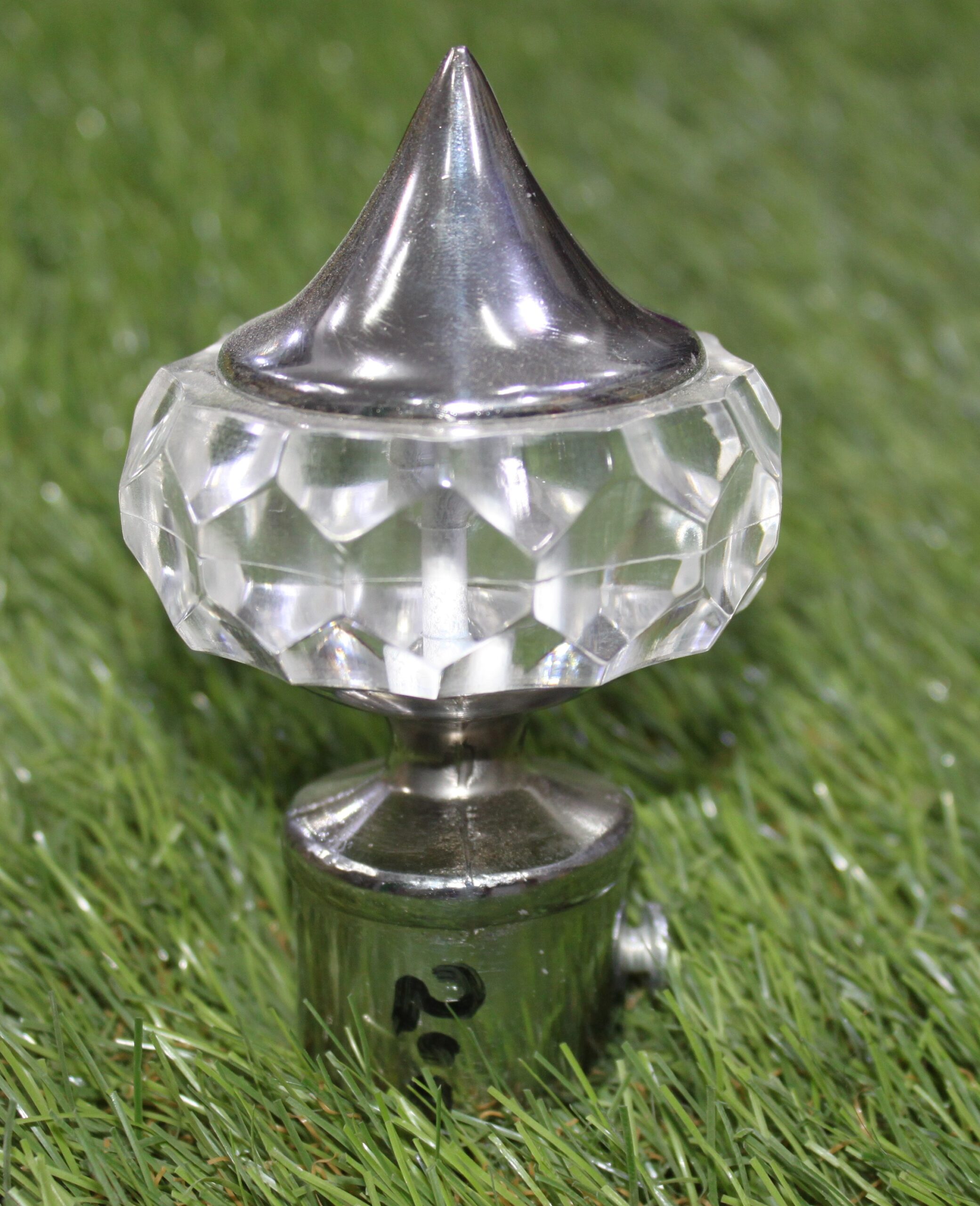 Clear crystal-effect pipe end stopper with a faceted design and chrome base, adding a touch of elegance while securely capping pipe ends.