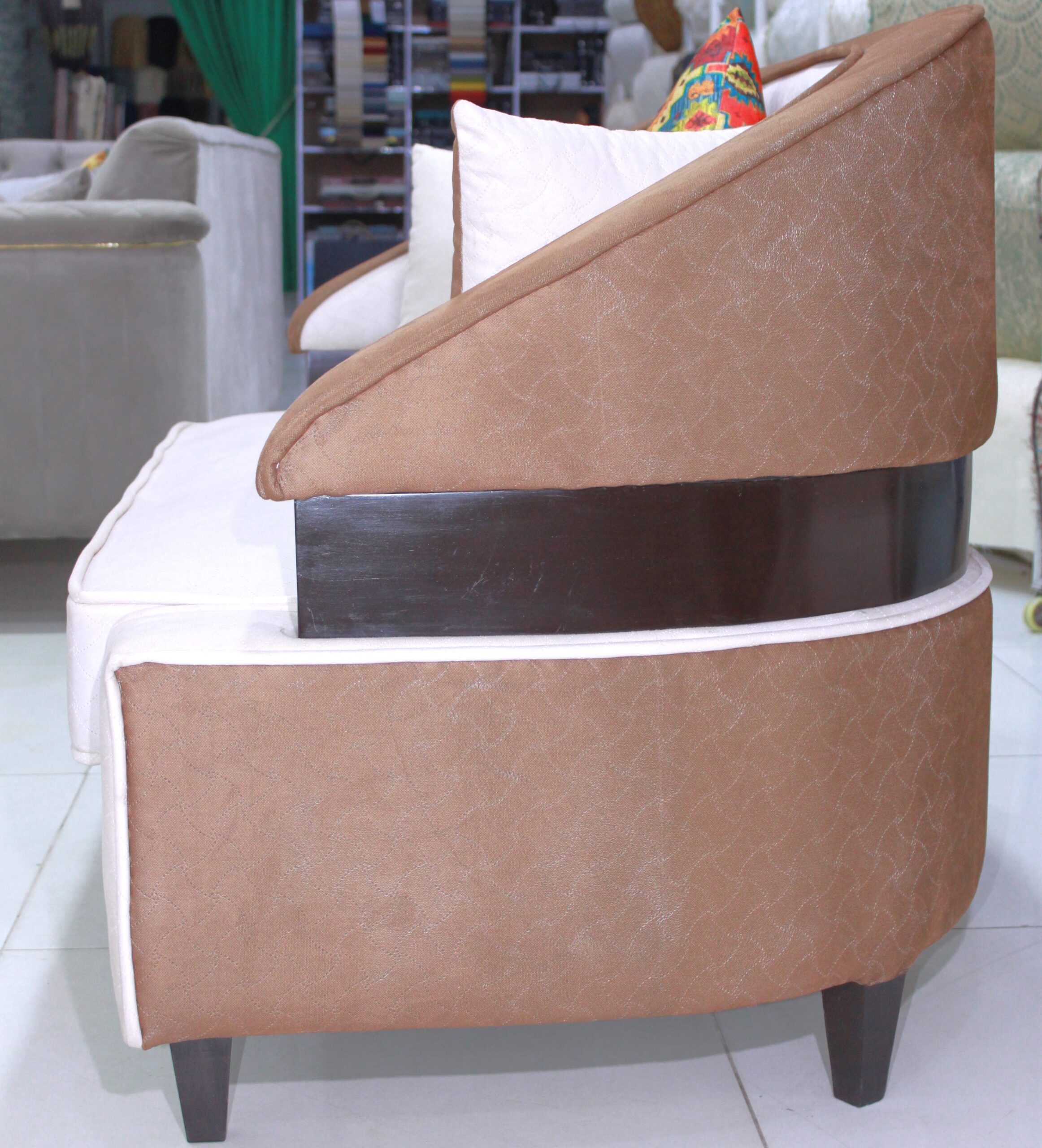 - Modern Two-Tone Design: Upholstered in a stylish combination of rich brown/taupe and light cream/white fabric for a contemporary look.