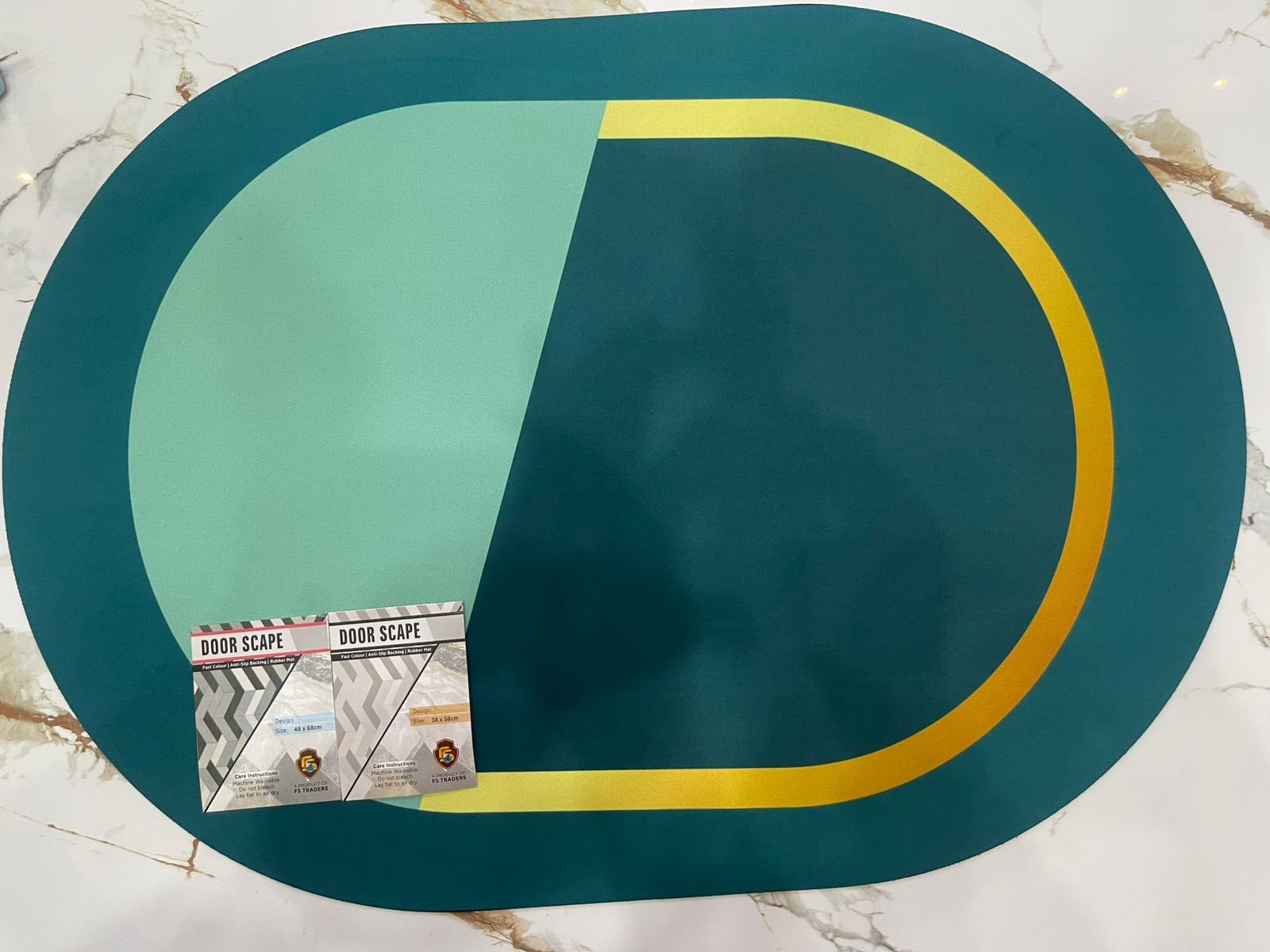 Add style and safety to any room with this premium anti-slip mat. Featuring a bold modern design in deep teal, soft mint, and a striking gold accent, this mat blends functionality with contemporary aesthetics. Its durable, non-slip backing keeps it securely in place, making it perfect for entryways, kitchens, bathrooms, or any high-traffic area. Easy to clean and resistant to wear, it offers both elegance and everyday practicality.