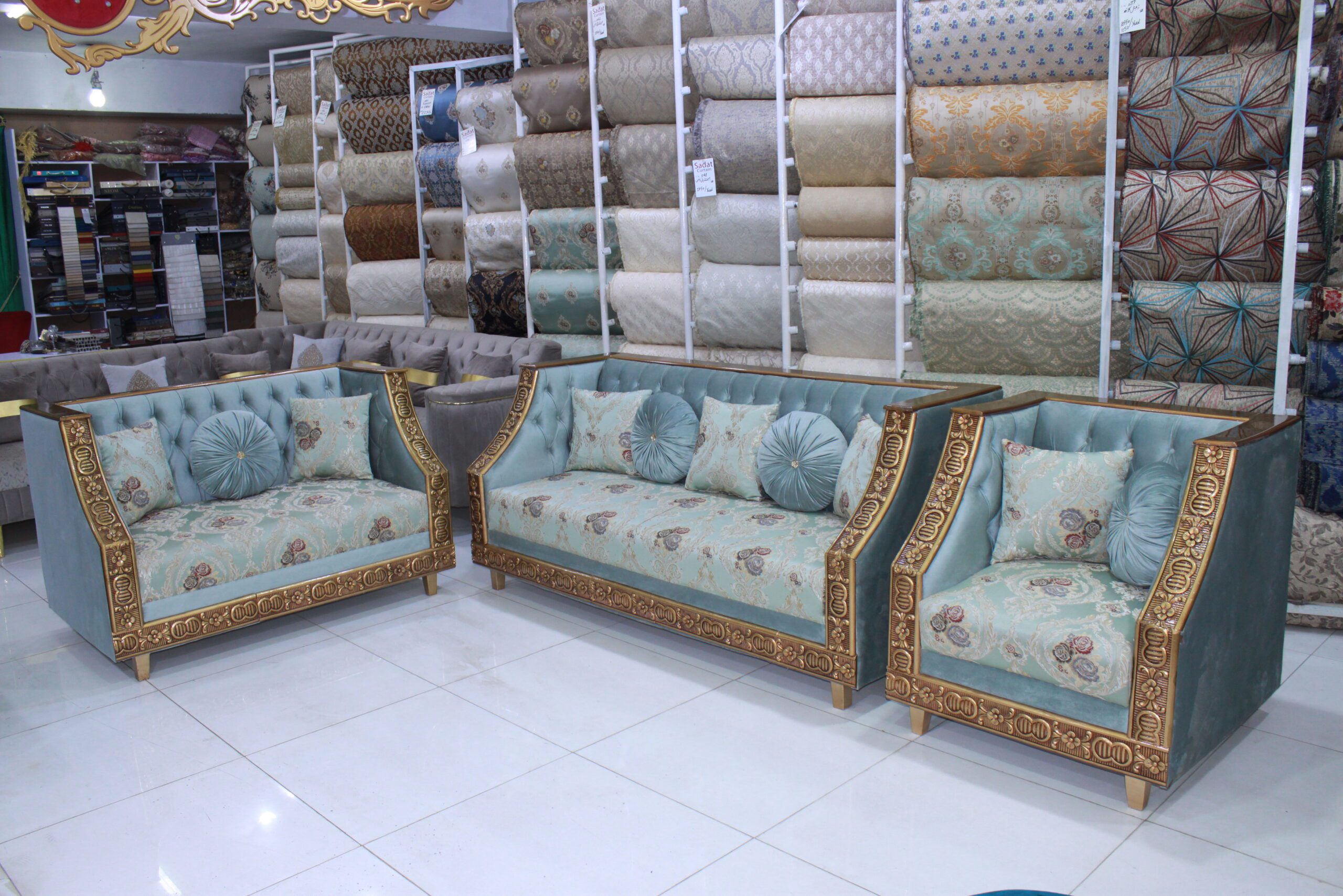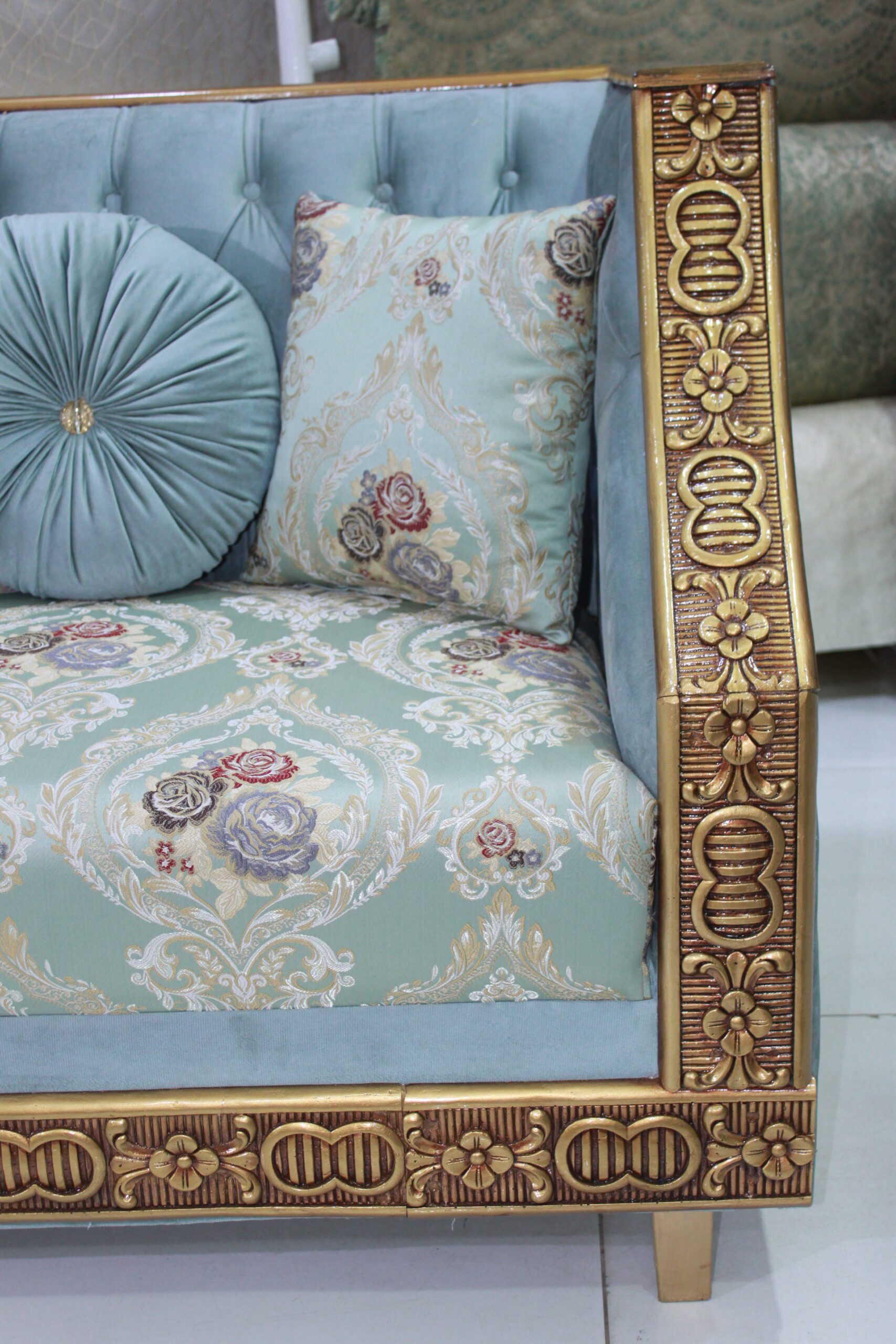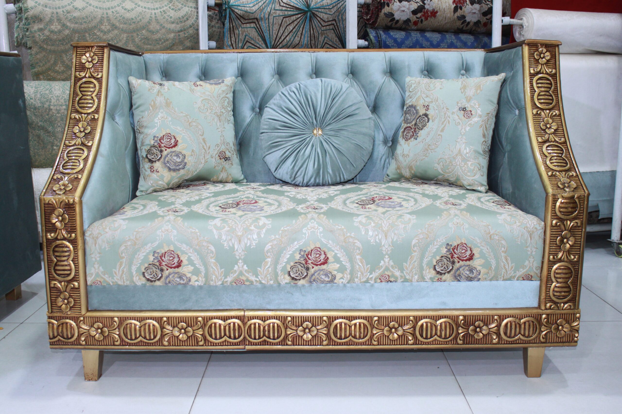 Material: Premium velvet and damask fabric upholstery